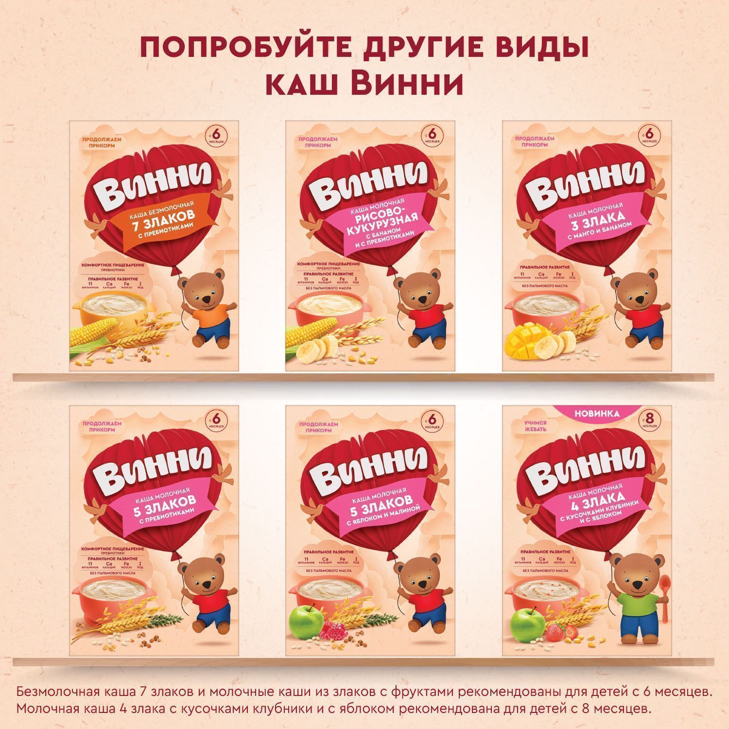 1 порция каши обеспечивает более 30% суточной возрастной потребности малыша в основных витаминах и минеральных веществах.