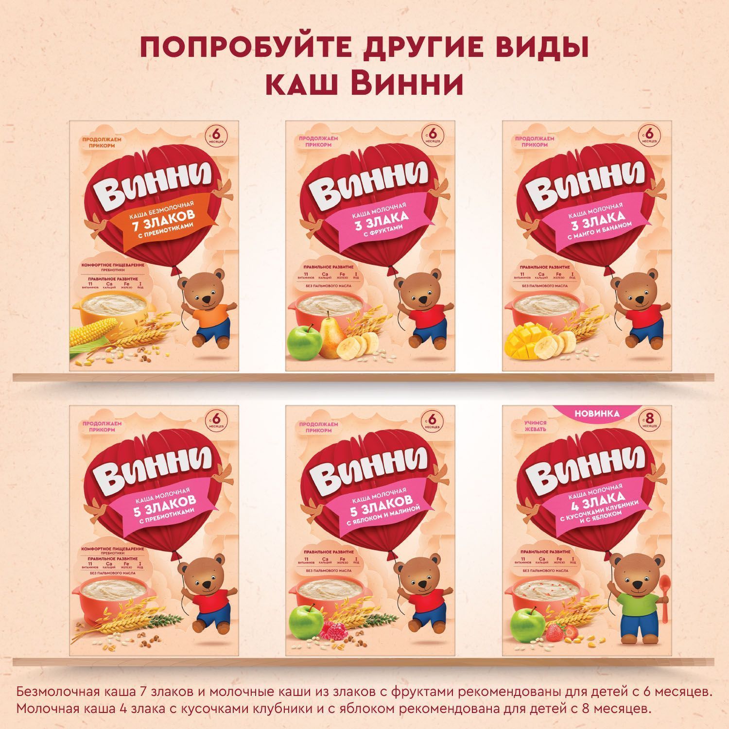 Каша детская молочная Винни рисово-кукурузная с бананом и с пребиотиками, без глютена, с 6 мес, 200г
