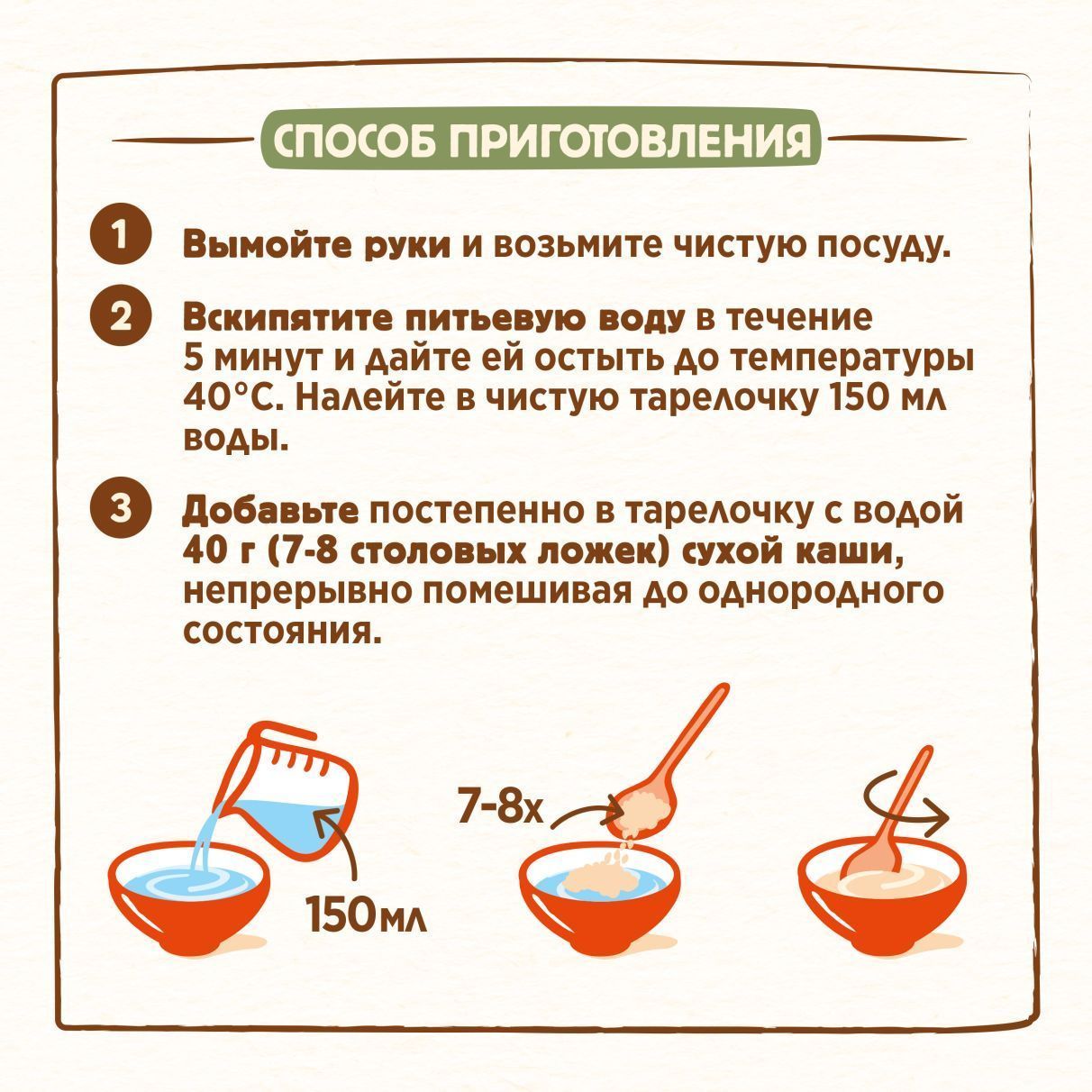 Каша не содержит добавленного сахара, что способствует формированию правильных привычек питания и заботе о здоровье малыша с раннего возраста. Приятный вкус злаков и фруктов порадует вашего малыша.
