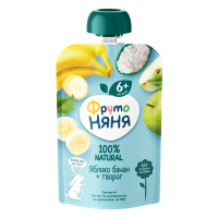 Фруктовое пюре «ФрутоНяня» из яблок, банана и творога в мягкой упаковке — это вкусный и полезный перекус, который удобно брать с собой, а яркая мягкая упаковка привлечет внимание вашего малыша и позволит ему есть самостоятельно. Нежные бананы, спелые яблоки и свежий творог обеспечат организм вашего малыша природной пользой и энергией для гармоничного роста!