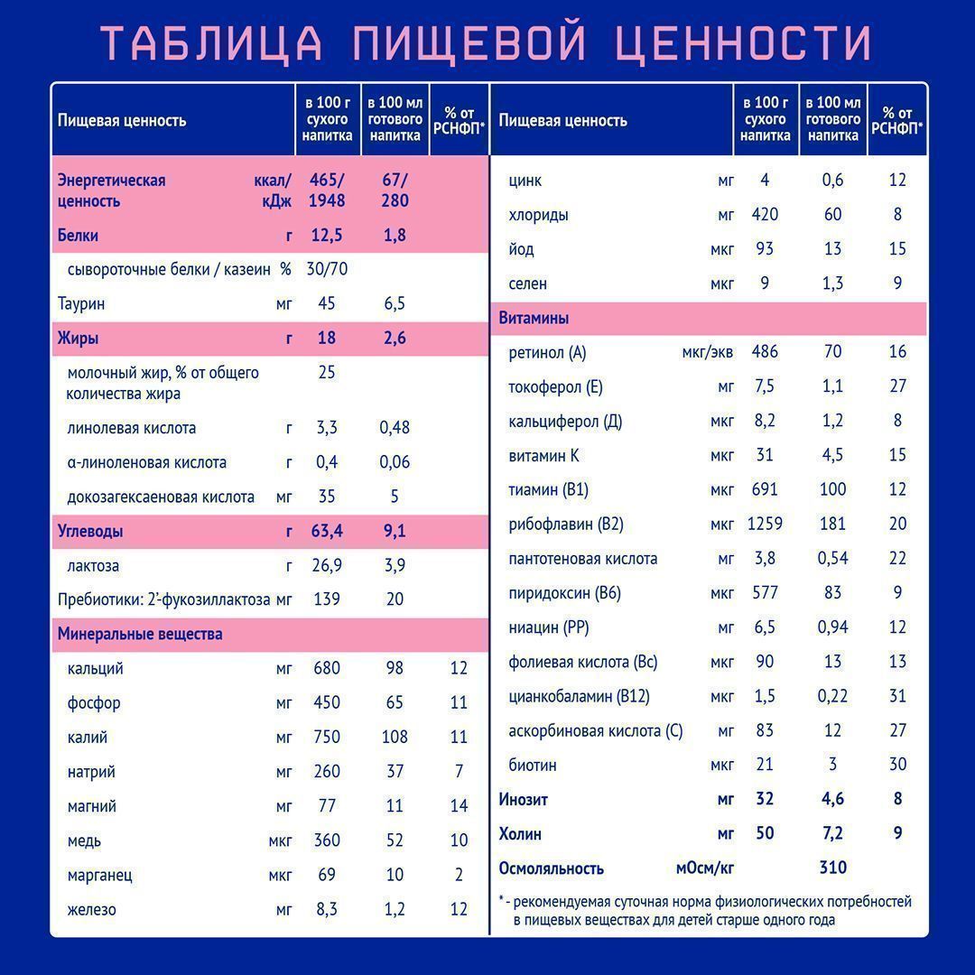 Имеет оптимально сбалансированный состав и дополняет рацион ребенка старше одного года важнейшими питательными веществами, необходимыми микронутриентами для поддержания активного роста, когнитивного развития и укрепления иммунитета.