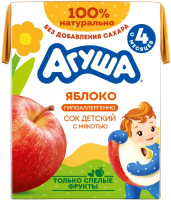 Сок яблочный детский Агуша с мякотью – это яркий и натуральный вкус спелых фруктов без добавленного сахара и консервантов. Педиатры рекомендуют знакомить малыша с соками не раньше 8 месяцев. Это поможет сформировать у малыша правильные пищевые привычки и сохранить интерес к несладким продуктам и напиткам.