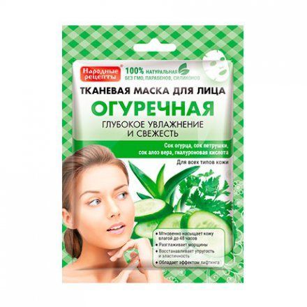 Маска д/лица НАРОДНЫЕ РЕЦЕПТЫ Тканевая "Огуречная" 25 мл (НДС)