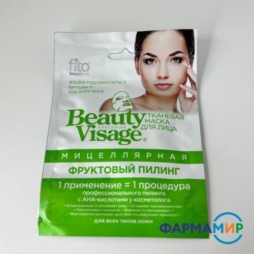 Маска д/лица тканевая BEAUTY VISAGE (БЬЮТИ ВИЗАЖ) Мицеллярная Фруктовый Пилинг 25мл