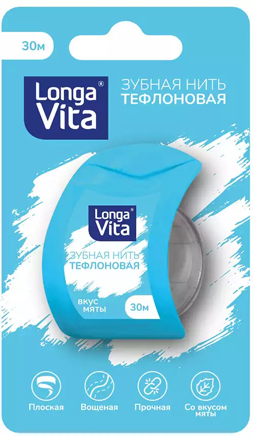 НИТЬ ЗУБНАЯ LONGA VITA (ЛОНГА ВИТА) 30М ТЕФЛОН