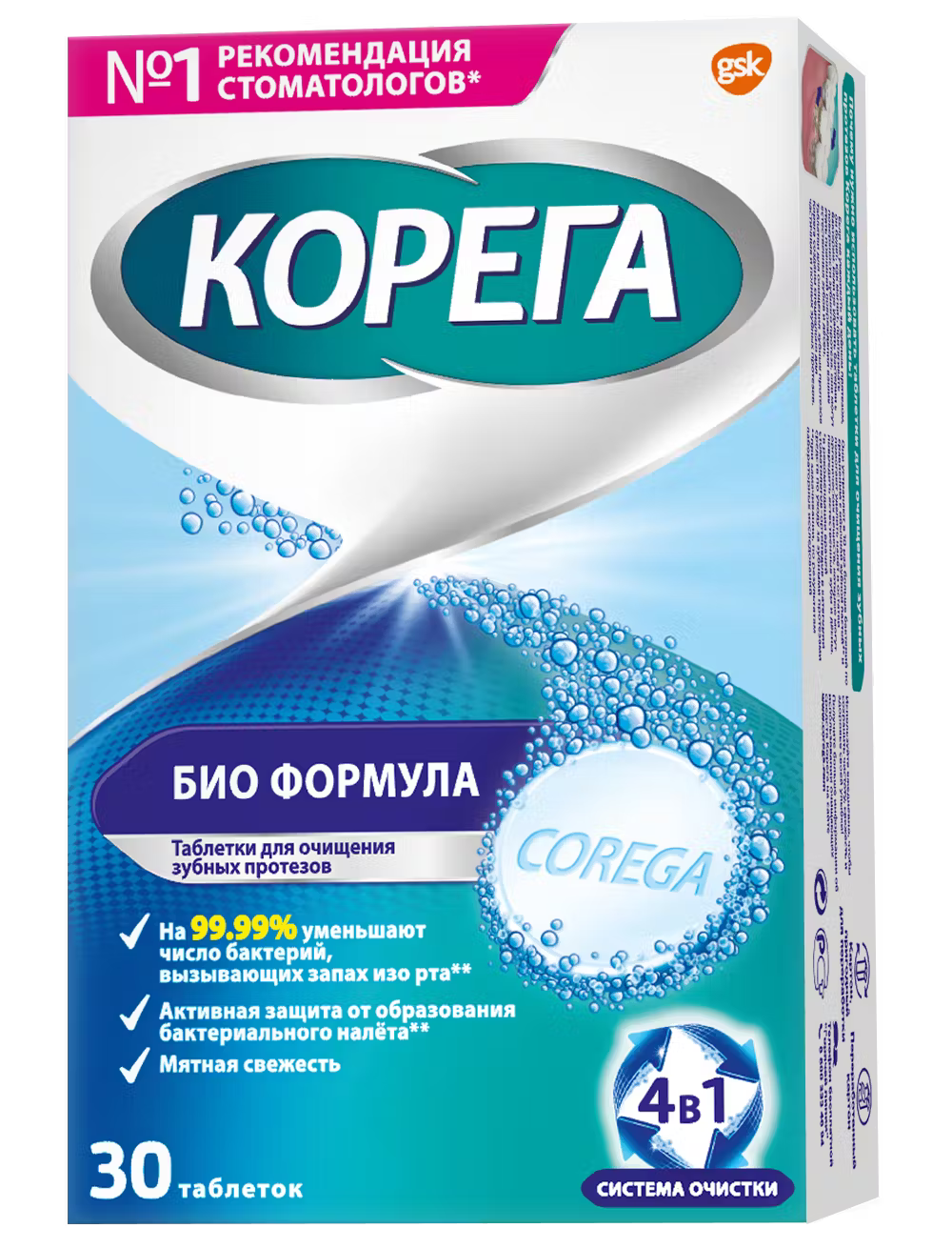 ТАБЛЕТКИ Д/ПРОТЕЗОВ КОРЕГА БИО ФОРМУЛА 4В1 ДЛЯ ОЧИЩЕНИЯ №30