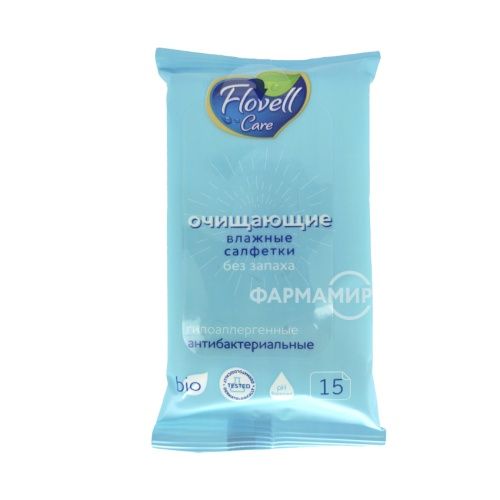 Салфетки влажные FLOVELL CARE (ФЛОВЕЛЛ КЕА) Bio Без запаха №15