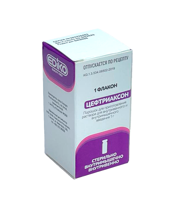 ЦЕФТРИАКСОН пор.д/приг. ин. 1Г фл. №1 ИНД УП .ЭДИКО (25)