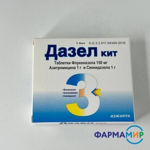 Каждый кит содержит 1) Флуконазола таблетки 150мг (1 таблетка)2) Азитромицина таблетки 1г (1 таблетка)3) Секнидазола таблетки 1г (2 таблетки)Флуконазол