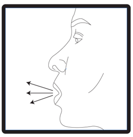 · Поместите мундштук в рот слегка откиньте голову назад. · Плотно сожмите губы вокруг мундштука. · Вдыхайте так сильно как можете, но дышите размеренно и глубоко.
