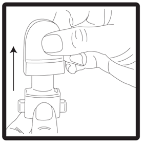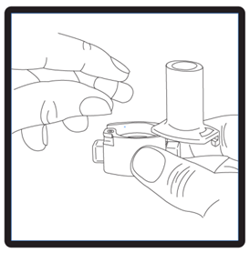 Крепко держите основание ингалятора и поверните мундштук в направлении стрелки, чтобы открыть