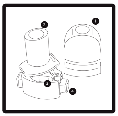 1. Колпачок 2. Мундштук 3. Капсульный отсек 4. Прокалывающая кнопка |