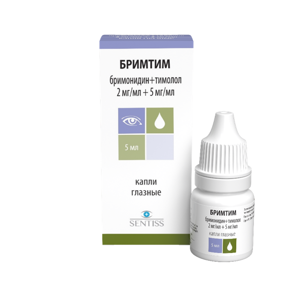 Препарат Бримтим состоят из двух активных веществ: бримонидина тартрат и тимолола малеат. Эти два компонента снижают повышенное внутриглазное давление (ВГД) за счет взаимодополняющих механизмов действия, а комбинированный эффект приводит к дополнительному снижению ВГД по сравнению с введением препаратов по отдельности. Действие препарата Бримтим начинается быстро.