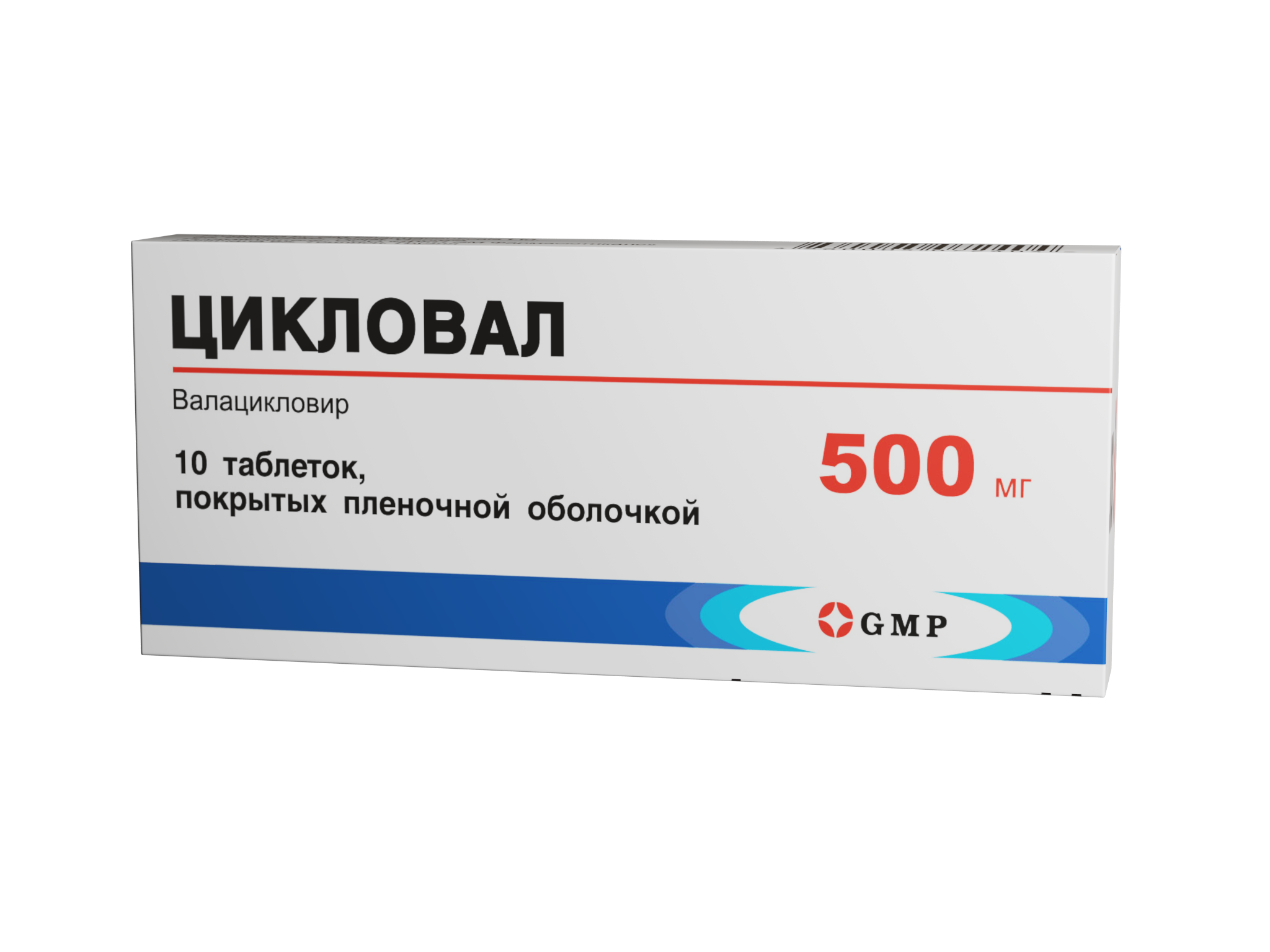 Активное вещество: валацикловира гидрохлорида моногидрат - 584.0 мг (эквивалентно валацикловиру 500 мг).