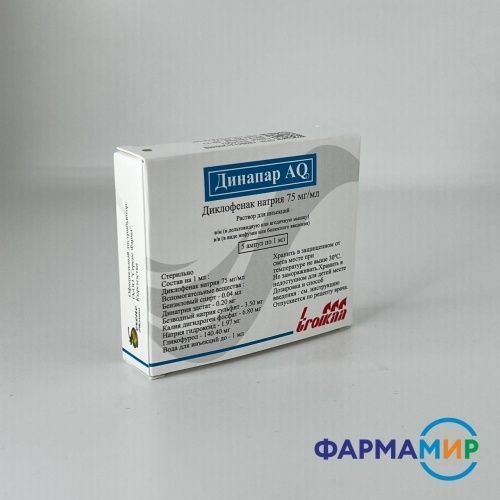 ДИНАПАР AQ содержит диклофенак натрия, вещество нестероидной структуры, оказывающее выраженное противовоспалительное, анальгетическое и жаропонижающее действие. Основным механизмом действия диклофенака считается торможение биосинтеза простагландинов. Простагландины играют важную роль в генезе воспаления, боли и лихорадки.