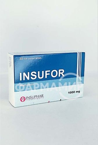 Инсуфор 1000 мг: Таблетки, покрытые пленочной оболочкой. 10 таблеток в блистере. 3 блистера вместе с листком-вкладышем в картонной коробке.