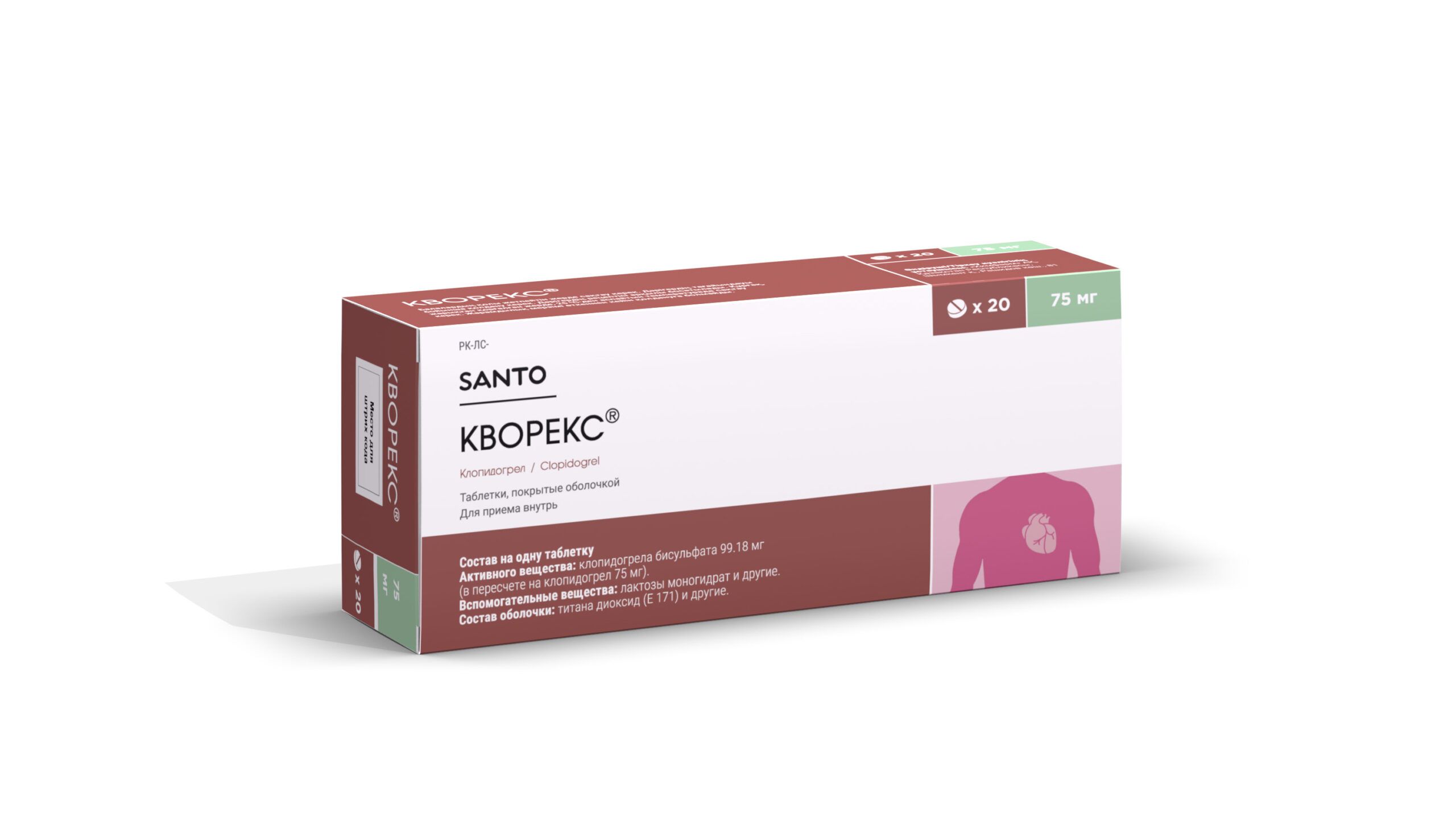 Кворекс - ингибитор агрегации тромбоцитов. Селективно ингибирует связывание аденозиндифосфата (АДФ) с его рецепторами, расположенными на поверхности тромбоцитов и последующую активацию комплекса гликопротеин IIb/IIIа, ингибируя таким образом, агрегацию тромбоцитов. Для ингибирования тромбоцитов необходима биотрансформация клопидогреля. Кворекс также препятствует агрегации тромбоцитов, вызванной другими агонистами, путем блокады повышения активности тромбоцитов освобожденным АДФ. Эффект клопидогреля длится в течение всей жизни тромбоцита, тромбоцитарная функция восстанавливается через 7-10 дней после отмены клопидогреля.