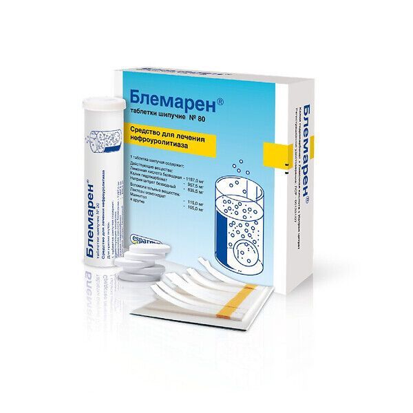 При растворении шипучих таблеток Блемарен® в воде образуется калия-натрия гидроцитрат и углекислый газ. При приеме препарата происходит повышение показателя рН мочи. Таким образом, препарат растворяет и предупреждает образование мочекислых камней. Кроме того, усиливает выделение цитратов и снижает выведение кальция, улучшает растворимость оксалата кальция в моче, ингибирует образование кристаллов и, следовательно, препятствует образованию кальций-оксалатных камней.