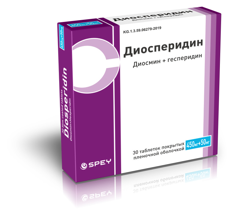 Диосмин — биофлавоноид. В комбинации с гесперидином оказывает венотонизирующее и ангиопротективное действие. Повышает тонус и уменьшает растяжимость вен, что способствует снижению венозного застоя; понижает проницаемость капилляров и увеличивает их резистентность; улучшает микроциркуляцию и лимфоотток. Применяется в смеси с гесперидином для лечения хронической венозной недостаточности нижних конечностей, лечения хронического геморроя и острых геморроидальных приступов.
