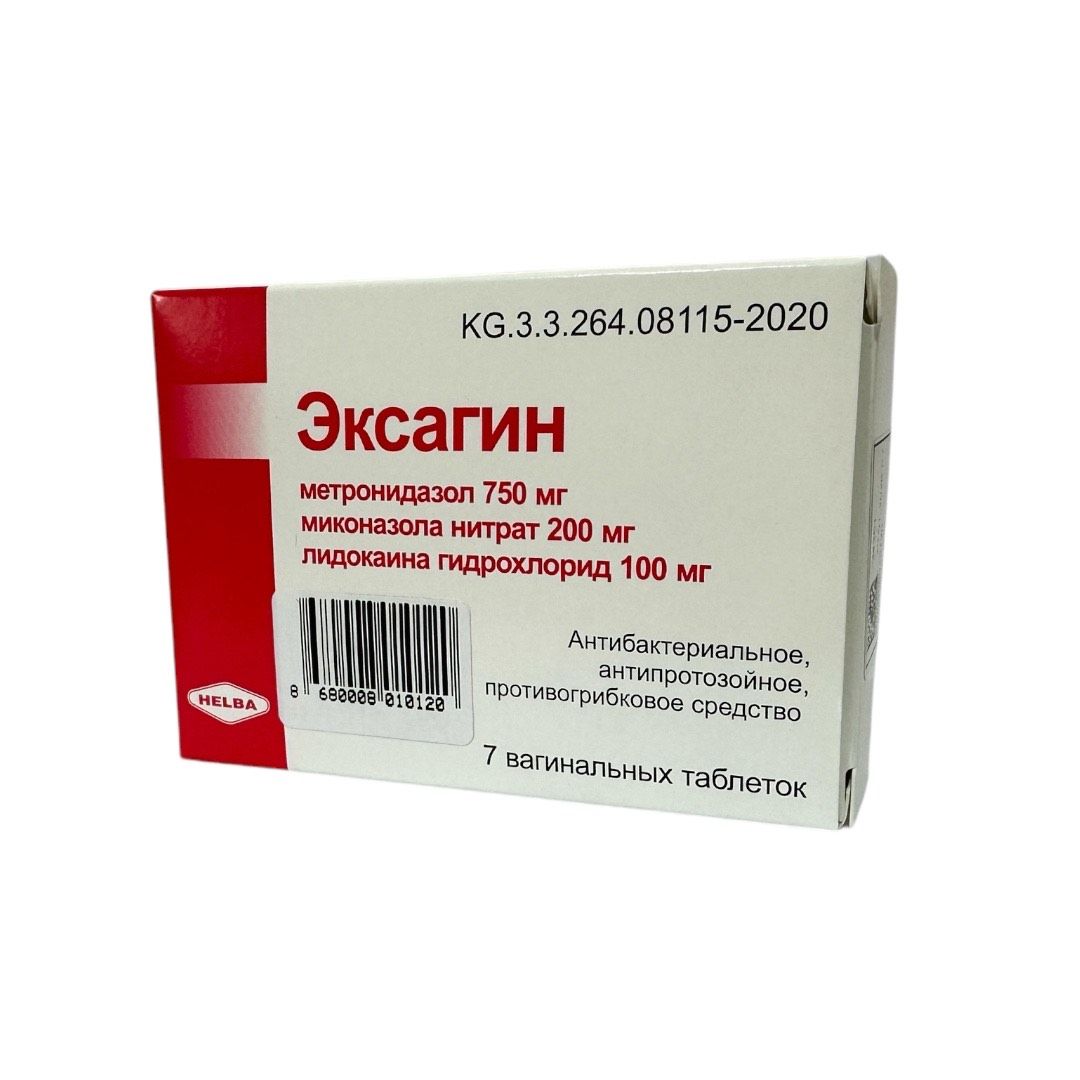 Вагинальные таблетки Эксагин содержат миконазол, оказывающий противогрибковое действие, метронидазол, оказывающий антибактериальное и антитрихомонадное действие, а также лидокаин, дающий местный анестезирующий эффект.