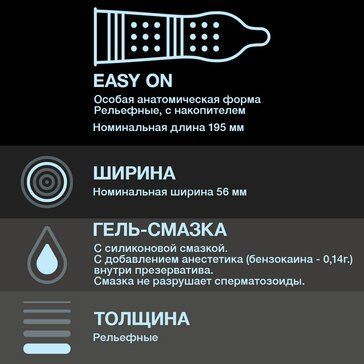 Надорвите упаковку со стороны зубчатой кромки и осторожно извлеките презерватив. Проверьте, чтобы презерватив был свернут наружу. Сдавите накопитель на конце презерватива, наденьте презерватив на эрегированный пенис до того, как он коснется тела партнера/до начала полового акта. Остановитесь и проверьте, если почувствуете, что презерватив слишком сжимает или соскальзывает, поскольку это может привести к повреждению презерватива. Сразу после эякуляции извлеките пенис, плотно придерживая презерватив у основания пениса, аккуратно снимите презерватив и выбросьте его в мусорное ведро. Не спускайте презерватив в унитаз. Для анального секса или в случае необходимости используйте дополнительную смазку. Если презерватив используется сначала для орального секса, для других последующих видов секса следует использовать новый презерватив. Презервативы предназначены только для одноразового использования. Повторное использование может привести к повреждению презерватива или увеличить риск возникновения заболеваний, передающихся половым путем.