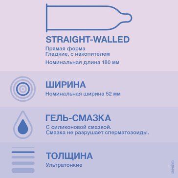 • Толщина стенки презерватива: 0.043-0.052 мм;