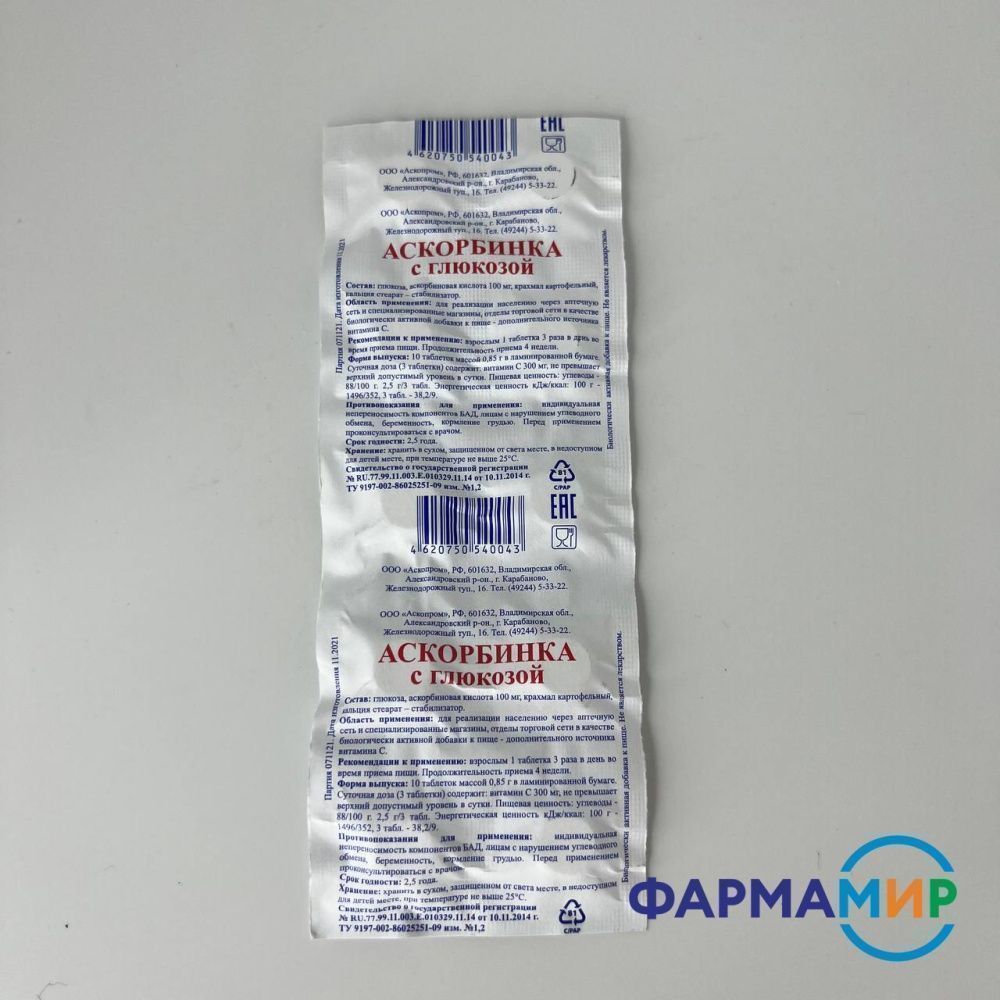 Аскорбиновая к-та 100мг №10 таб С ГЛЮКОЗОЙ (Россия) (НДС)