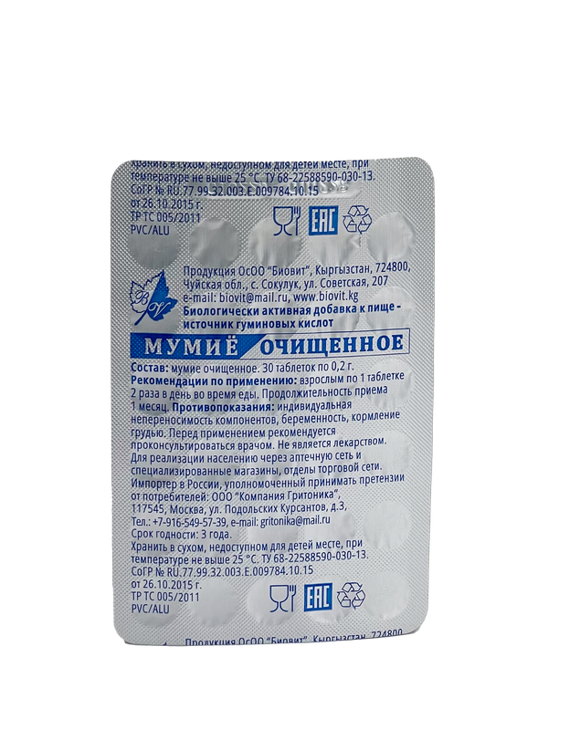 Мумие 0,2 №60 табл очищенное (НДС) Биовит
