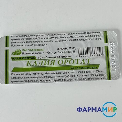КАЛИЯ ОРОТАТ 500МГ №10 ТАБЛ