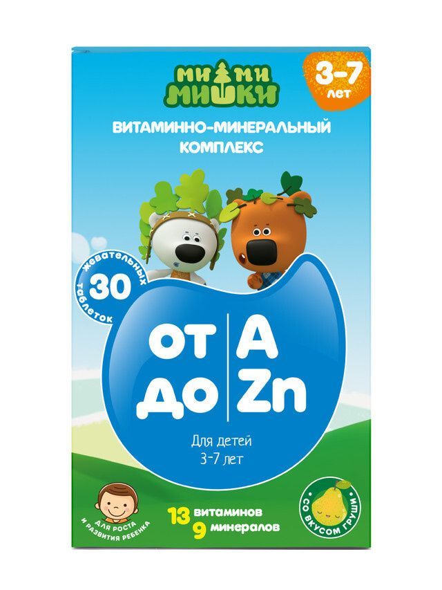 ВИТАМИННО-МИНЕРАЛЬНЫЙ КОМПЛЕКС Д/ДЕТЕЙ 3-7 лет от A до Zn 860мг №30 жеват табл МИ-МИ-МИШКИ (НДС)