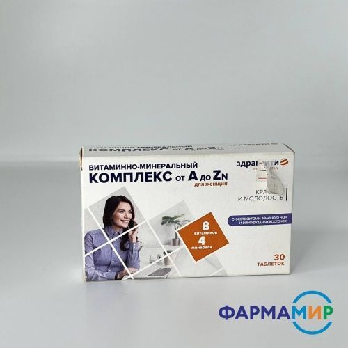 ВИТАМИННО-МИНЕРАЛЬНЫЙ КОМПЛЕКС Д/ЖЕНЩИН от A до Zn 1250мг №30 табл ЗДРАВСИТИ (0)