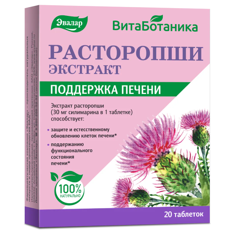 Расторопши экстракт 0,25 "Эвалар" №20 табл