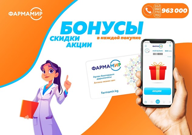 Бонусную карту можно использовать при покупках во всех аптеках сети «Фармамир» на территории КР.